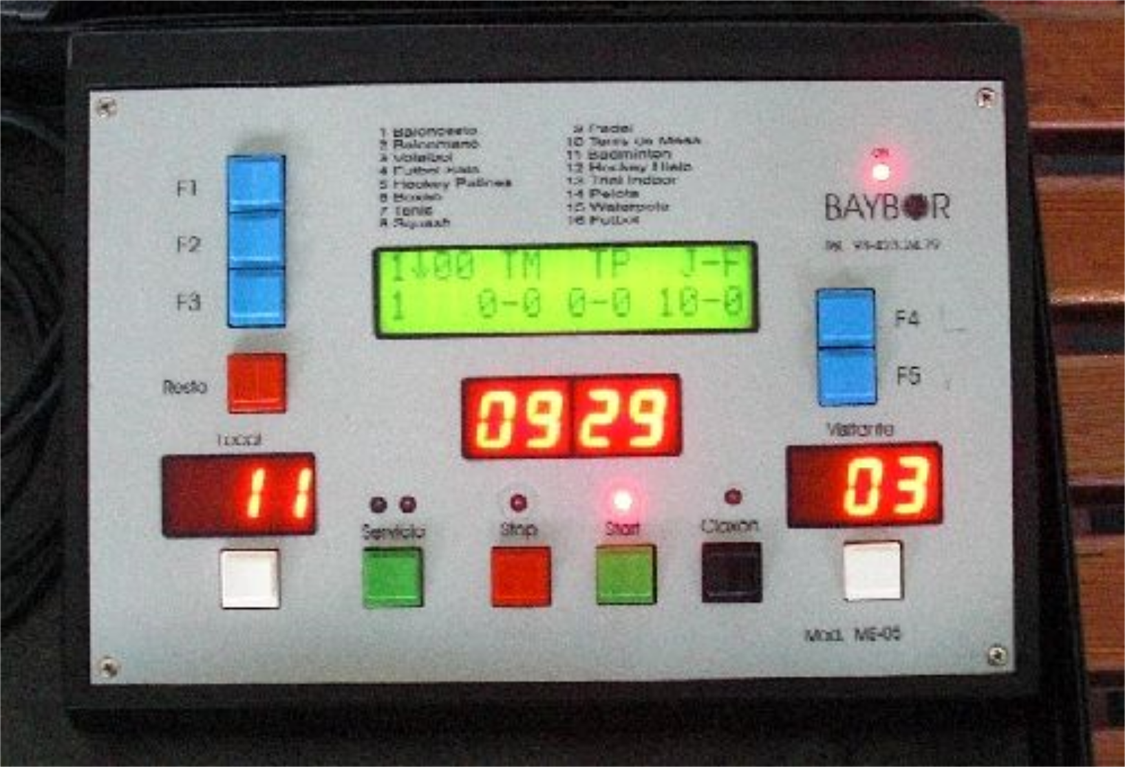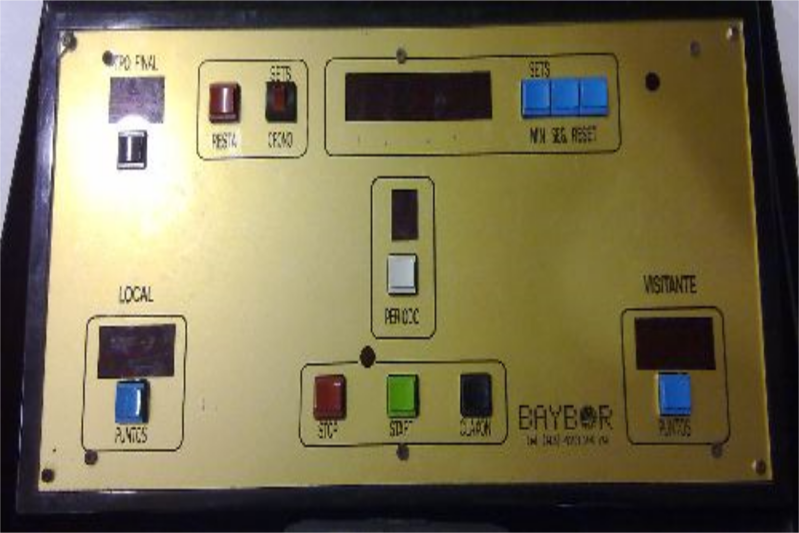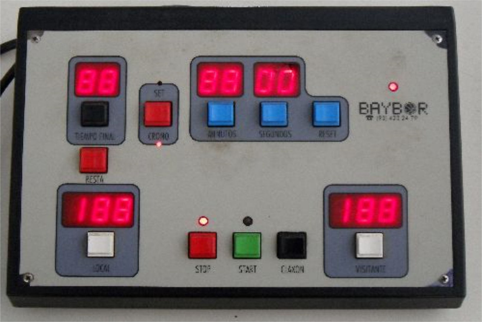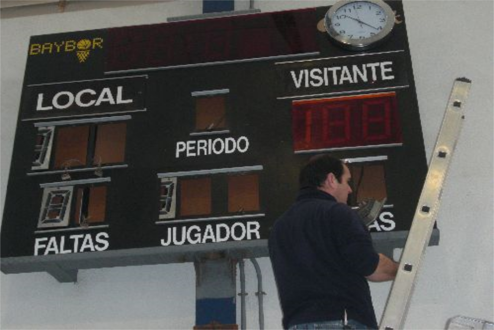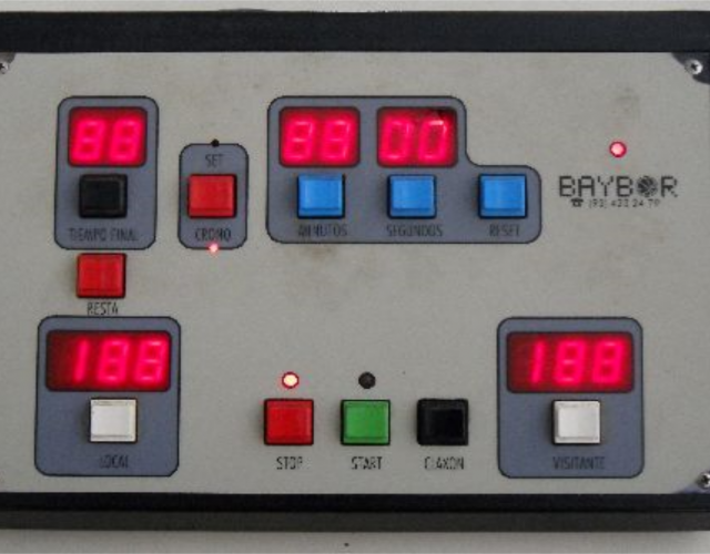 BAYBOR es probablemente la marca mas conocida de marcadores electrónicos de nuestro país , en el 2012 ceso su actividad dejando un gran mercado de marcadores que con el tiempo van deteriorándose y averiándose dejando a muchos recintos deportivos sin asistencia técnica , nuestra empresa esta especializada en reparar marcadores de todas las marcas a nivel nacional y mantenemos una buena relación con los distintos proveedores dando así una larga vida a estos aparatos electrónicos , en el caso de BAYBOR , antes de proceder a una reparación, es conveniente saber el modelo y así poder disponer de información previa para determinar la avería y dar soluciones .